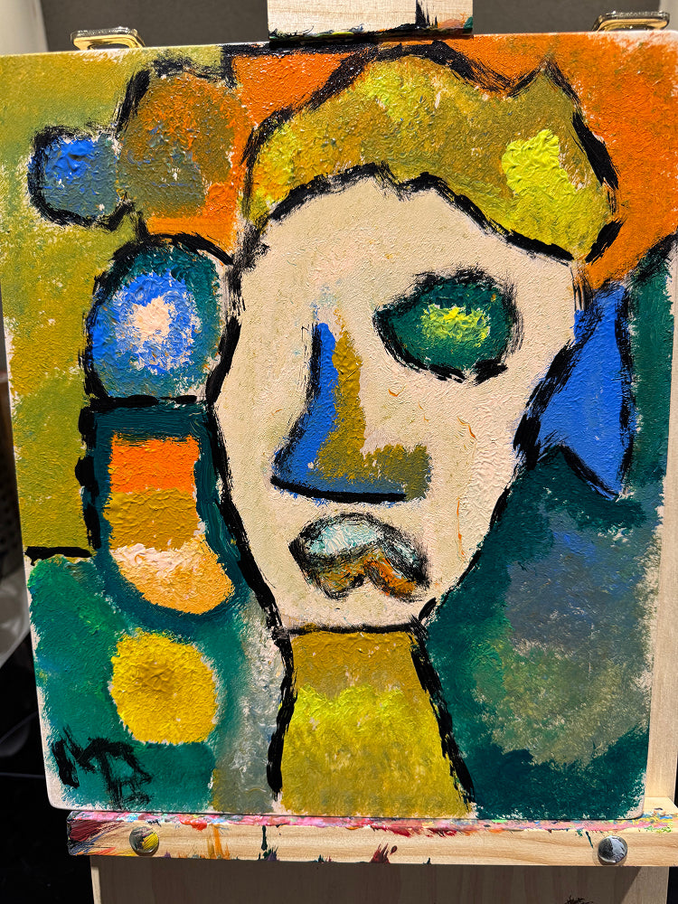 Elevate your space with this captivating original work. Featuring an electric mix of citrus tones and cool aquatics, the painting uses heavy texture to bring a physical presence to the canvas. Its unique, stylized features and rhythmic color blocks make it a standout contemporary piece for any modern home or gallery.